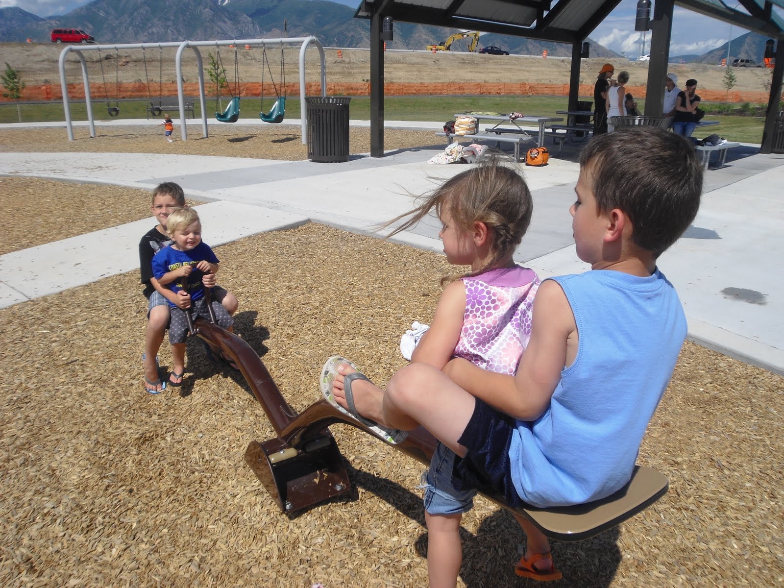 Nixon and I traveled down to Nephi while Conner got to play in California. From the time we got there we were always entertained from one thing to the next. Nixon loves playing with all of his cousins! He rode bikes with them the second we pulled into the driveway, and then we headed off to Payson to go to the swimming pool. Kaydee called and said that it was pouring extremely hard with thunder and lightning. I started to question or swimming trip, but my mom was optimistic and we continued our journey! We ended up eating Pizza in our car for lunch rather than the park because of the rain. The Payson pool closed for the day so we went with plan B, Spanish Fork park and splash pad. By the time we got there the sun was out and everyone was happy! After a full day of playing with cousins I went with my parents and aunt and uncle to one of my very good friends wedding, McKenley Park. He has always been a very close family friend and one of my closest friends growing up. I haven't seen or talked to him for quite awhile, it is sad what growing up and moving away can do to you!
